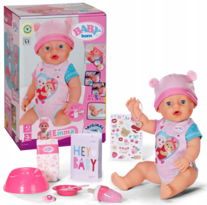 Lalka BABY born Emma jest interaktywnym bobasem, który uwielbia zabawę i przygody. Dziesięć funkcji naśladujących prawdziwe zachowanie niemowlaka sprawia, że przedszkolaki pokochają opiekę nad dziewczynką.
