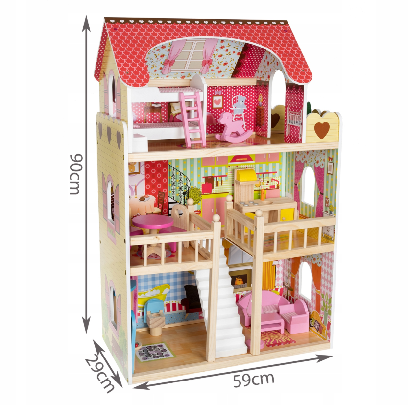 ✔️ trwałość - willa dla lalek i wszystkie drewniane elementy są wyjątkowo trwałe i odporne na intensywną zabawę, dzięki solidnej konstrukcji przetrwają wiele godzin kreatywnej zabawy