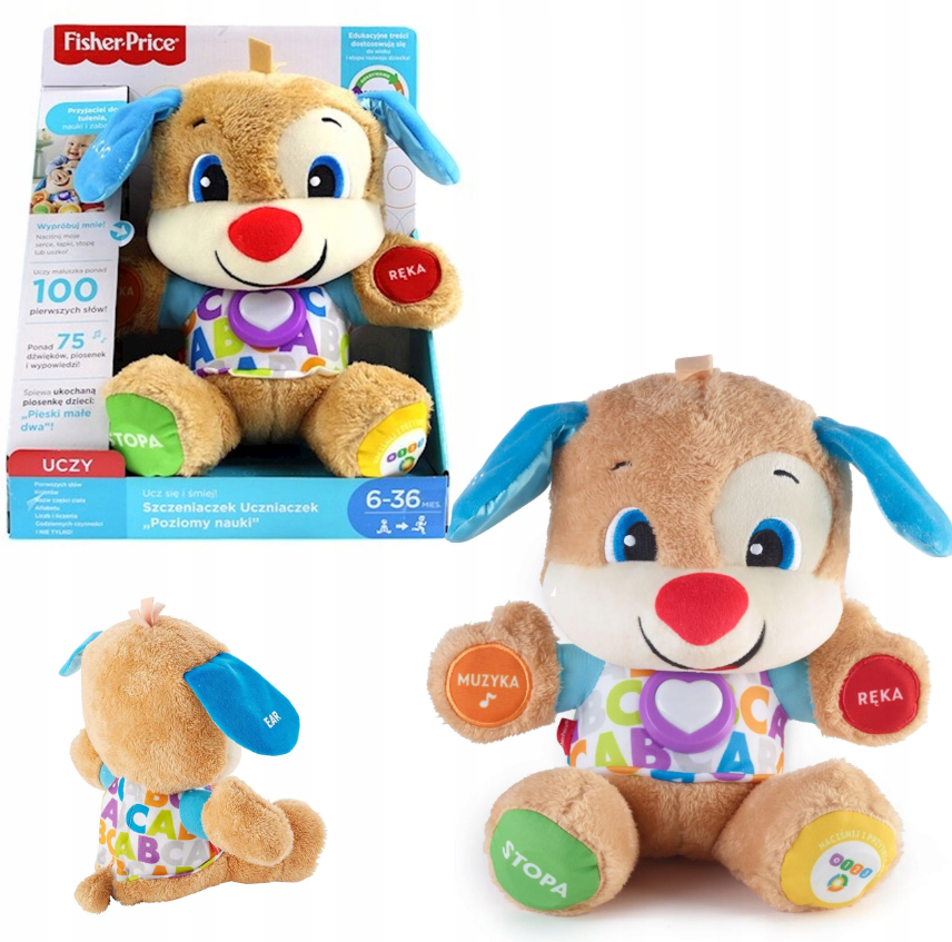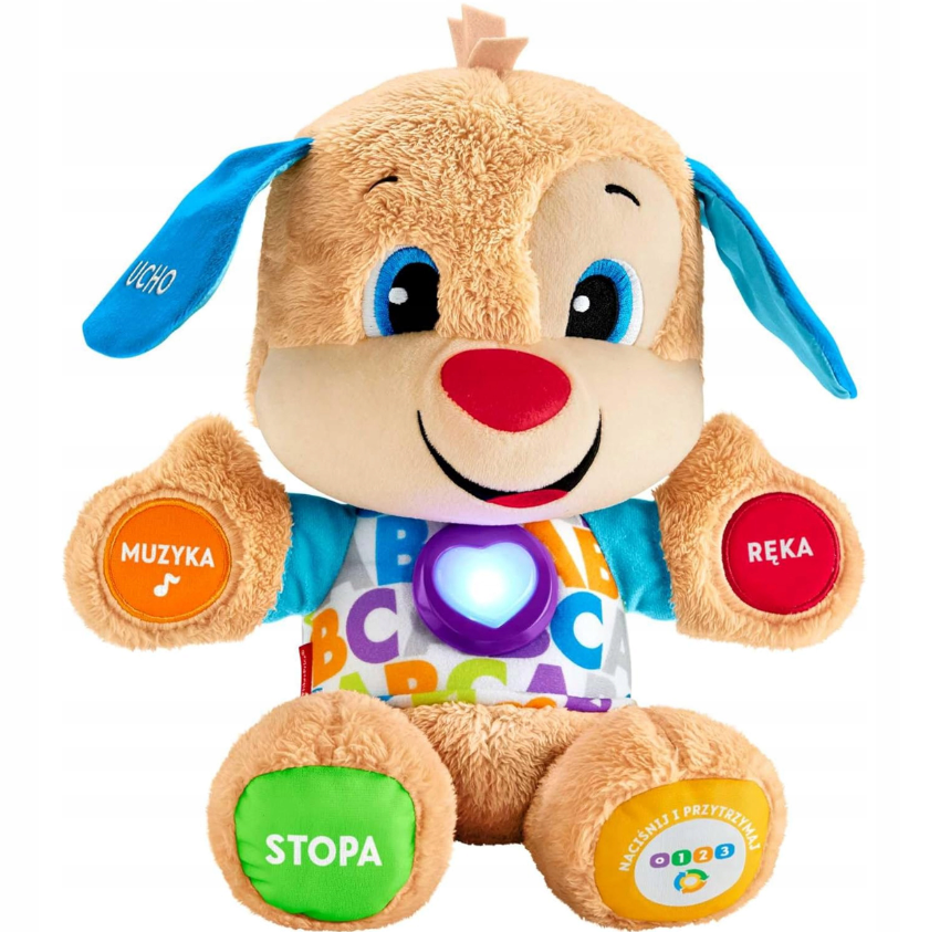 Szczeniaczek jest mięciutki, uwielbia się tulić i jest gotów udowodnić, że nauka to świetna zabawa! Reaguje na dotyk Twojego dziecka radosnymi piosenkami i wypowiedziami, które uczą ponad 100 pierwszych słów, nazw części ciała, kolorów, kształtów i nie tylko! A ponieważ każde dziecko uczy się w swoim tempie, Szczeniaczek ma wbudowaną technologię "Poziomy nauki", która umożliwia wybranie poziomu najodpowiedniejszego na danym etapie rozwoju malucha. Zabawka oferuje całe mnóstwo piosenek, dźwięków i wypowiedzi na każdym z trzech poziomów zabawy. A podświetlane na wiele kolorów serduszko Szczeniaczka pulsuje w rytm odtwarzanej muzyki!