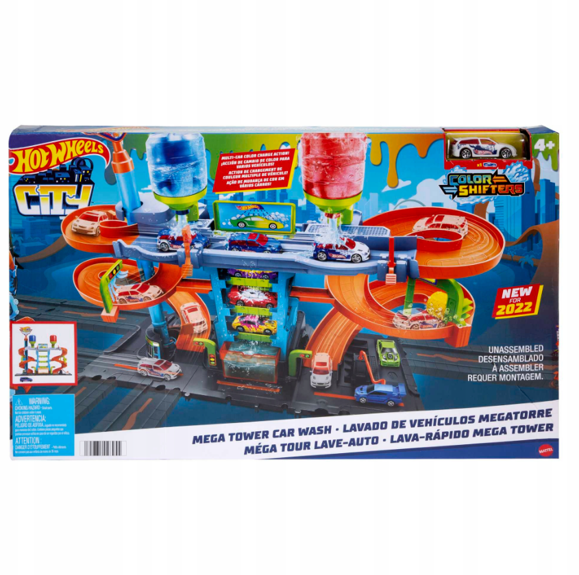 HOT WHEELS CITY ZESTAW ZAKRĘCONA MEGA MYJNIA Color Shifters + autko