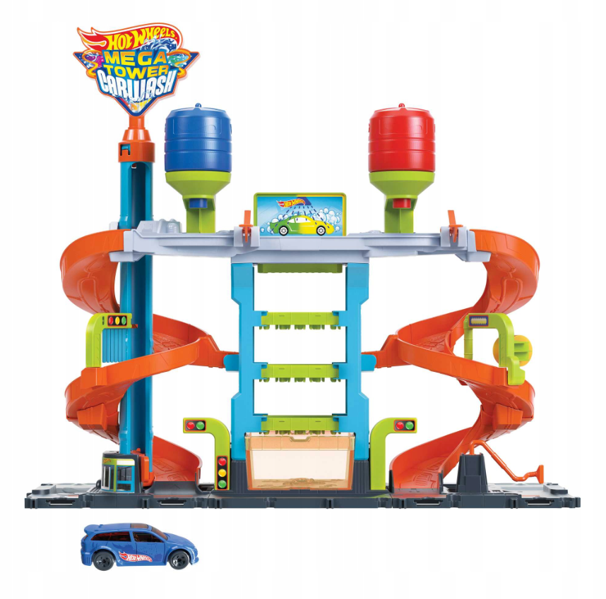 Dzięki zbiornikom ciepłej i zimnej wody w myjni Hot Wheels City Mega staje się ona pełna przygód.