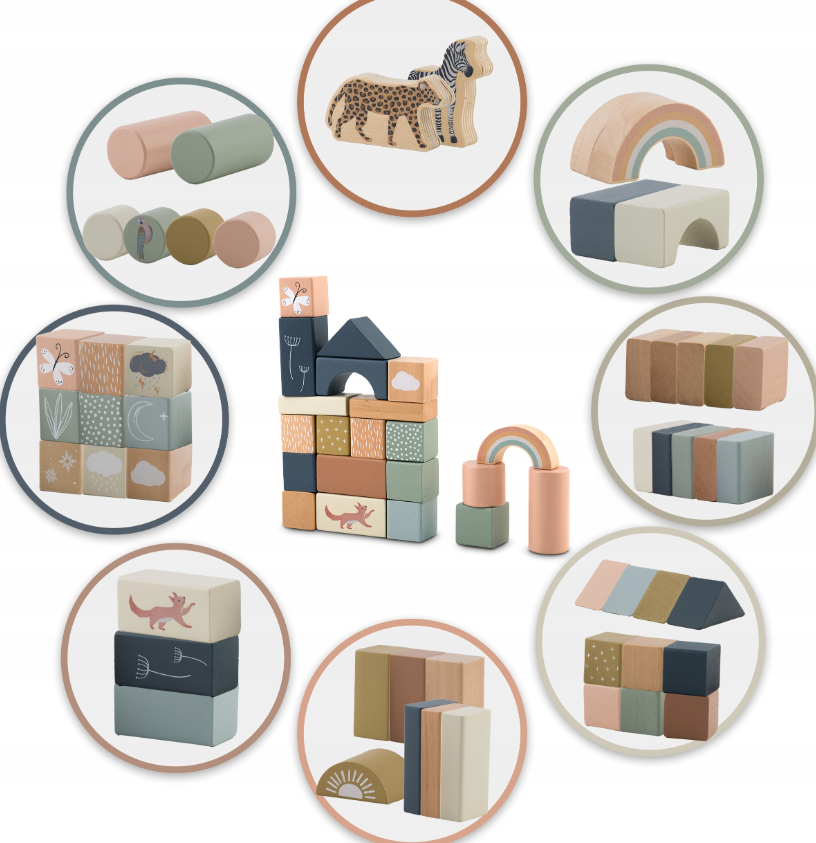 - Drewniane klocki to świetna baza do rozwijania wyobraźni.