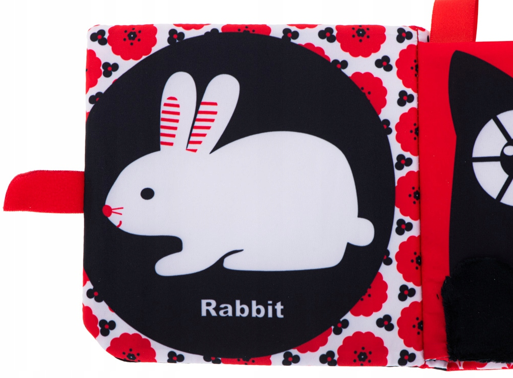 Magiczna materiałowa książeczka w kontrastowe wzory to świetna propozycja dla dzieci dopiero poznających świat. Biało-czarno-czerwone obrazki będą doskonałym wstępem do poznania zwierząt.