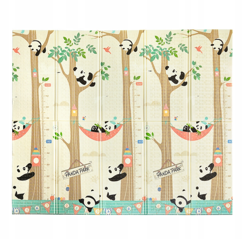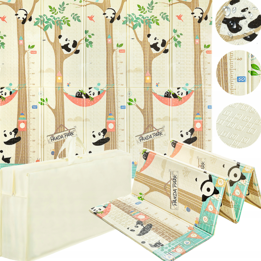MATA EDUKACYJNA PIANKOWA DWUSTRONNA SKŁADANA DLA NIEMOWLĄT PANDY 200x180CM