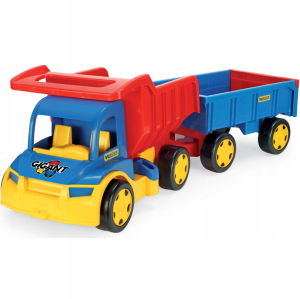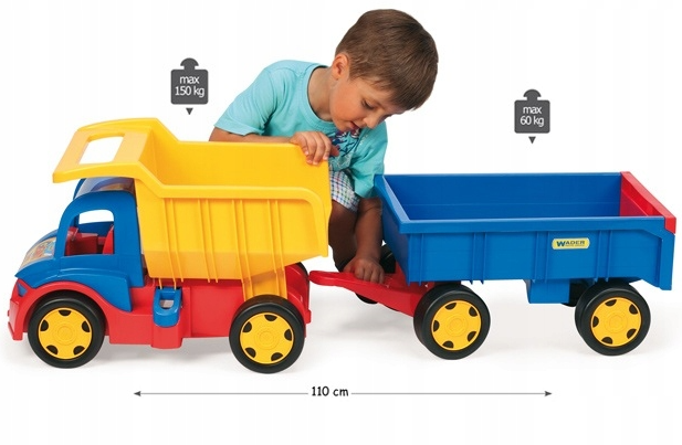 Gigant Truck Wywrotka to okazały samochód o długości 55 cm iogromnej wytrzymałości do 150 kg oraz bezpieczny i wytrzymały samochód o udźwigu 60 kg polubi każdy mały budowniczy.