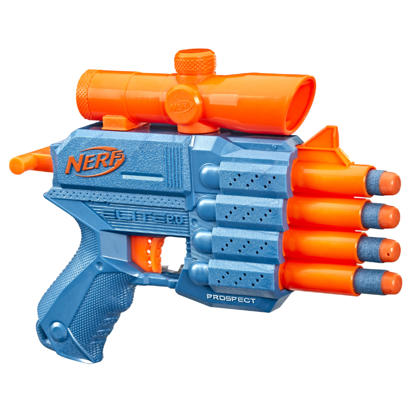 Rozpocznij strzelanie dzięki kompaktowemu blasterowi Nerf Elite 2.0 Prospect QS-4! Wystrzel 4 strzałki z rzędu - załaduj 4 strzałki do lufy, uzbrój i naciśnij spust, aby wystrzelić 1 strzałkę. Zestaw zawiera 8 oryginalnych piankowych strzałek Nerf Elite, które doskonale nadają się do zabawy w pomieszczeniach i na zewnątrz. Dodatkowo Prospect QS-4 został wyposażony w celownik. Wyrzutnia Nerf Elite 2.0 Prospect QS-4 posiada ciekawy, nowoczesny design, który zachwyci każdego wielbiciela Nerf. Strzelaj i wygrywaj szybko dzięki blasterowi NERF 2.0 Elite Prospect QS-4!